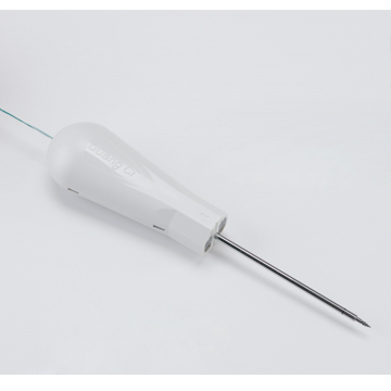 不可吸收带线锚钉产品由锚钉、缝线(带针或无针)及插入器组成。锚钉由符合GB/T13810-2017标准的TC4材料制造,表面经黑灰色阳极氧化处理;缝线由符合YY0167-2020中规定的B类聚酯(聚对苯二甲酸乙二酯)材料制成,有白色和绿色两种颜色,绿色缝线中含Quinizarine Green SS 溶剂绿3染料。缝线表面带涂层,涂层材料为Vinyl Terminated Polydimethylsiloxane 【乙烯基封端的二甲基(硅氧烷与聚硅氧烷)】;带针缝线中缝合针由符合GB/T4240-2019规定的12Cr18Ni9材料制成;插入器手柄由高分子材料制成,插入器中螺丝刀杆由符合YY/T 0726-2009规定的630不锈钢材质制成。